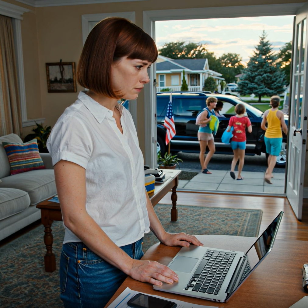 Patrzyłem, jak wycofują ciężarówkę z podjazdu, leżaki trzeszczą w bagażniku, a mały magnes z amerykańską flagą krzywo przyklejony do tylnej klapy. Potem wróciłem do domu, mijając oprawione rodzinne zdjęcie w korytarzu – mama, tata, Emily i Jake owinięci ręcznikami po zeszłorocznej wycieczce do Galveston. To ja trzymałem aparat.