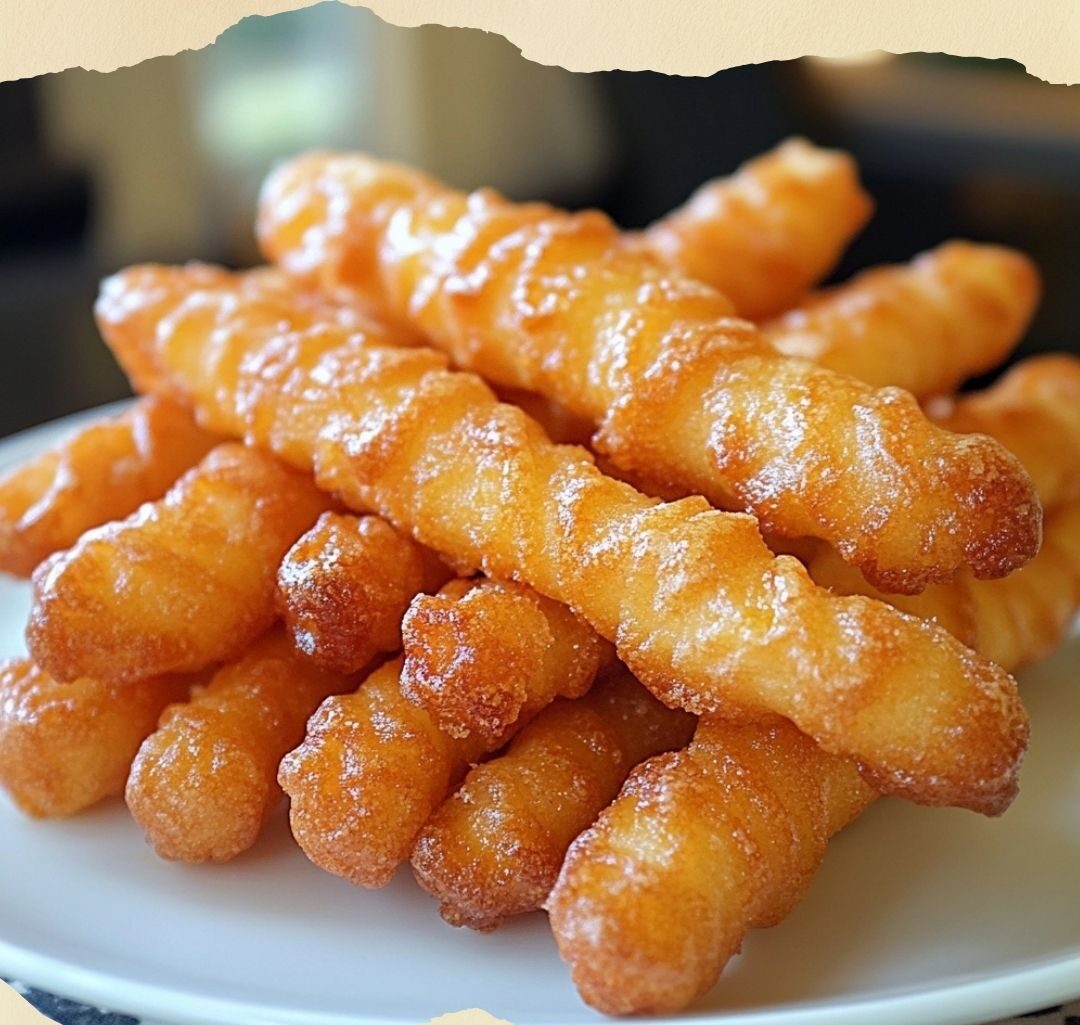 Patyczki z ciasta lejkowego to pyszna wersja tradycyjnego ciasta lejkowego, oferująca tę samą chrupiącą, złocistą słodycz w zabawnej, przekąskowej formie. Idealne do dzielenia się, te patyczki są lekko oprószone cukrem pudrem i można je jeść same lub w połączeniu z sosami do maczania, takimi jak czekoladowy, karmelowy lub owocowy.