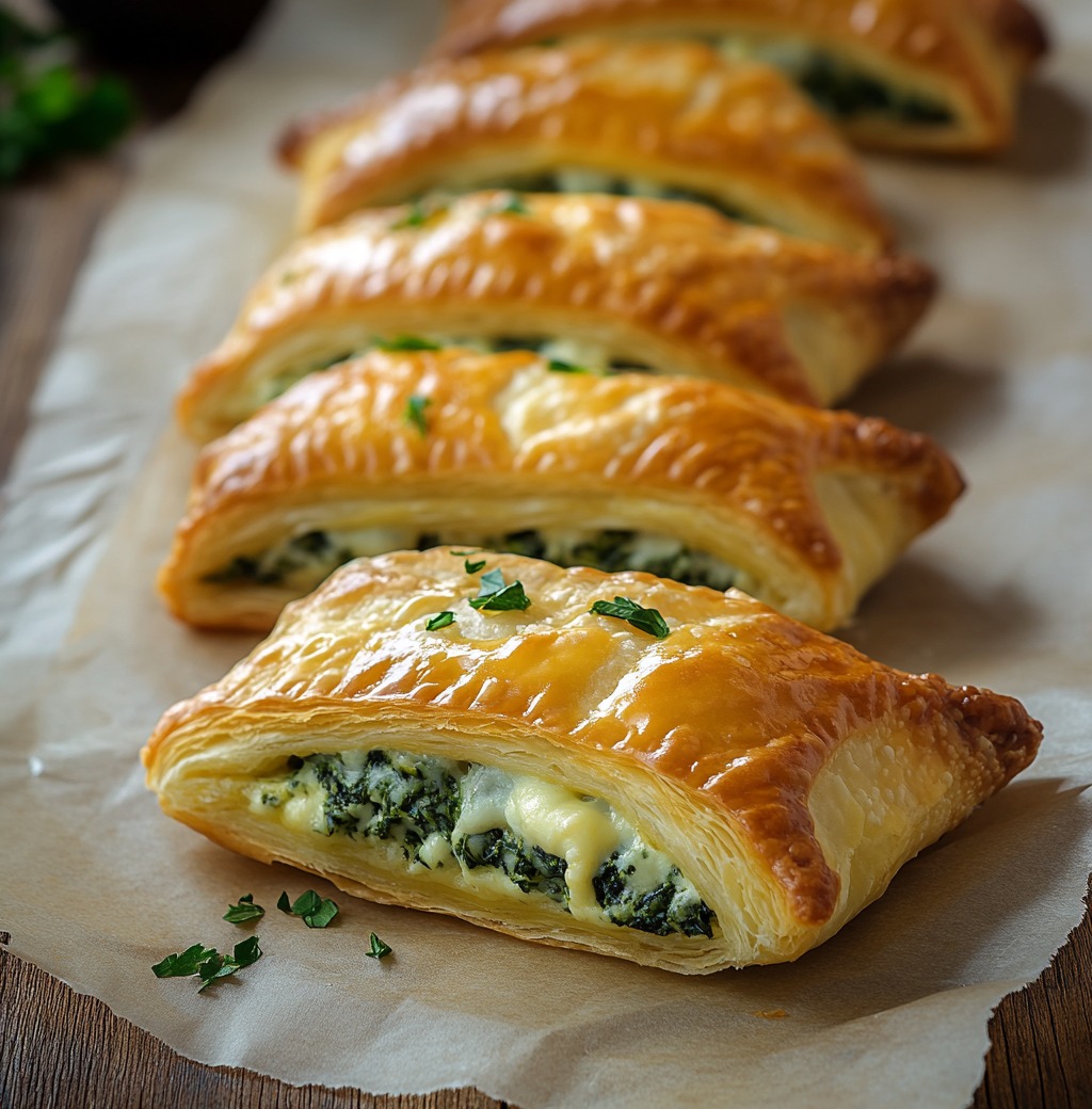 Ciasto francuskie nadziewane szpinakiem i ricottą
