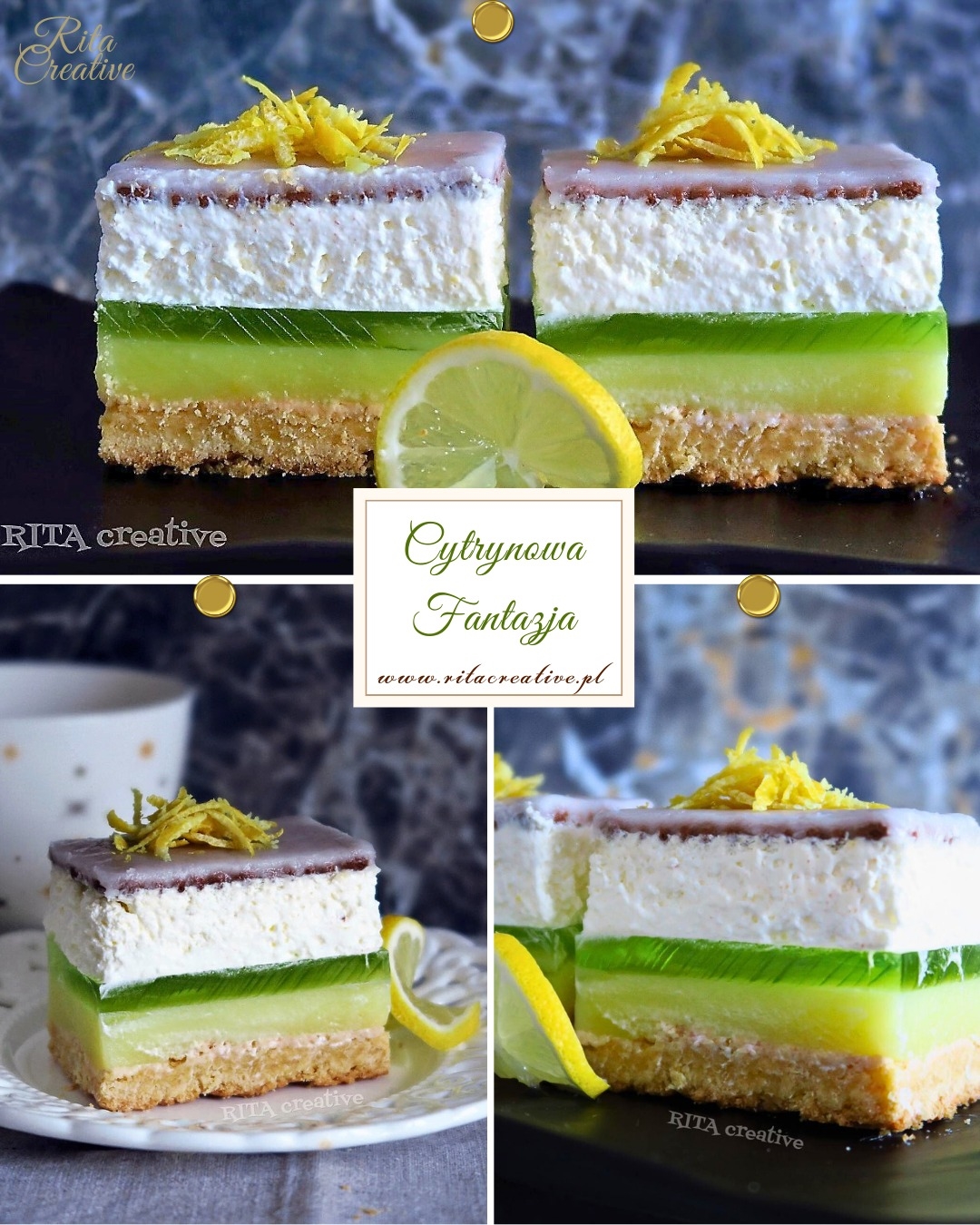 Całość przykryta ciemnymi biszkoptami polanymi cytrynowym lukrem, wesoło udekorowanym czuprynką z otartej skórki cytryny ![]()