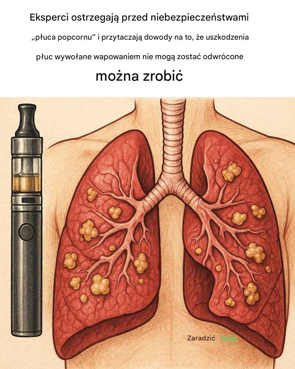 Płuca popcornu, czyli obliteracyjne zapalenie oskrzelików, to poważna i nieodwracalna choroba płuc związana z niektórymi substancjami chemicznymi zawartymi w oparach e-papierosów. Wraz ze wzrostem popularności waporyzacji, zrozumienie ryzyka związanego z tym nawykiem jest ważniejsze niż kiedykolwiek. Eksperci ostrzegają, że szkody spowodowane waporyzacją mogą być trwałe i wzywają użytkowników do ponownego rozważenia swoich wyborów, zanim będzie za późno.