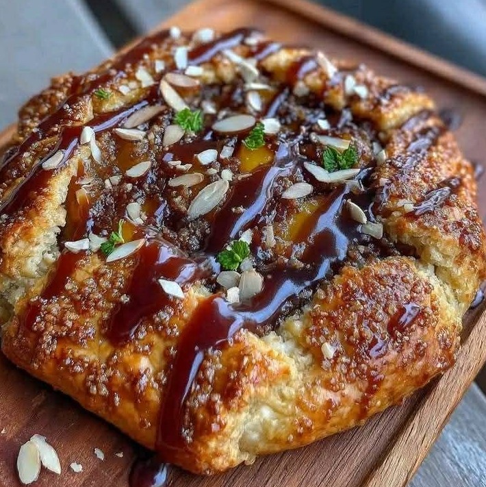 Ta rustykalna galette z morelami i migdałami w karmelu z solą morską to piękna celebracja dojrzałych owoców pestkowych, zawiniętych w maślane ciasto i polanych odrobiną ciepłego, domowego karmelu. Delikatne, kruche ciasto skrywa naturalnie słodkie nadzienie z plasterków moreli i mąki migdałowej, doprawione wanilią i nutą cytrusów. Podczas pieczenia morele miękną i uwalniają soki, tworząc dżemowe wnętrze, które idealnie uzupełnia orzechową bazę i głęboki, bogaty smak karmelu z solą morską. Elegancka, a zarazem przystępna, ta galette idealnie sprawdzi się na letnie spotkania lub jako efektowny deser, który łatwo się komponuje.