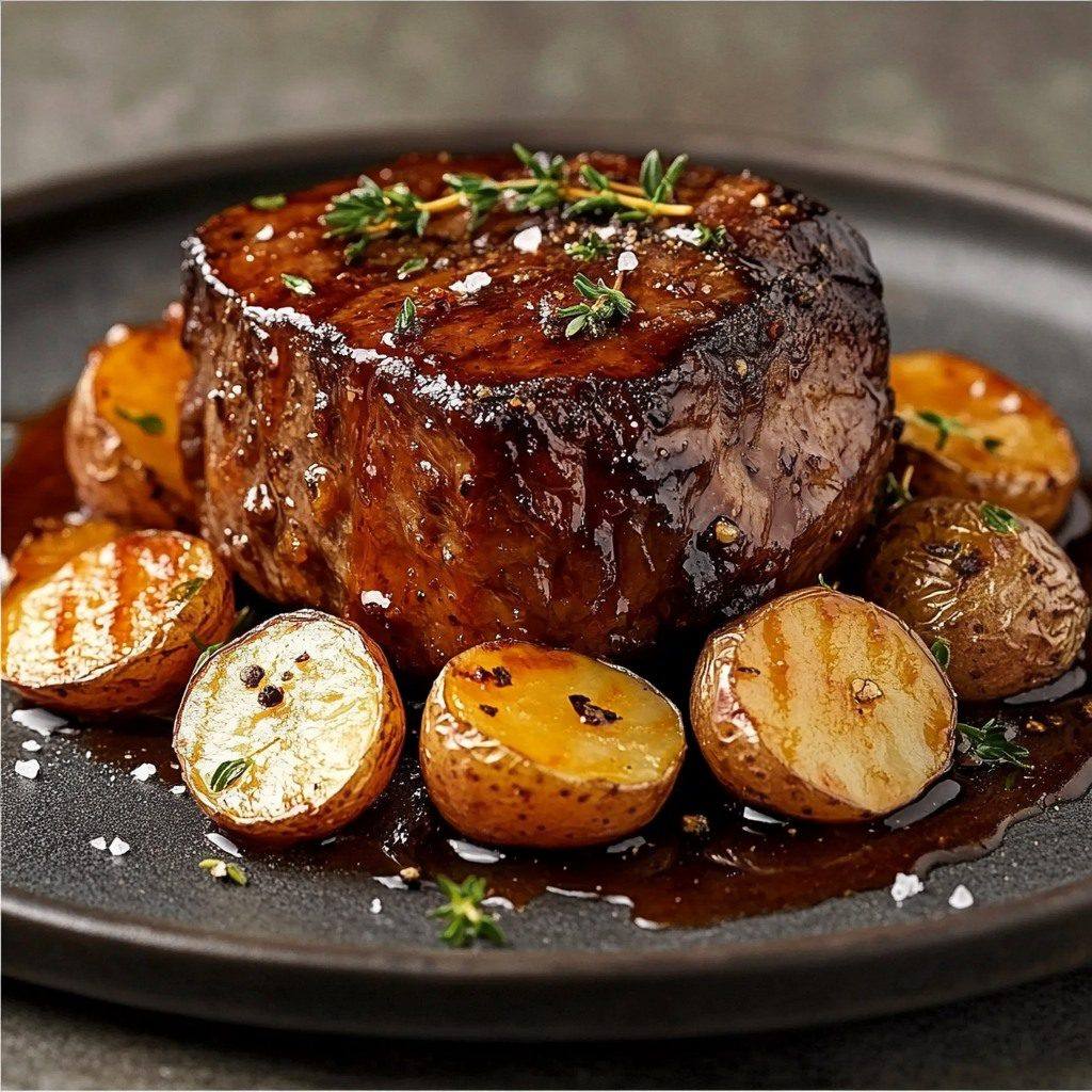 Pieczona wołowina glazurowana miodem z ziemniakami