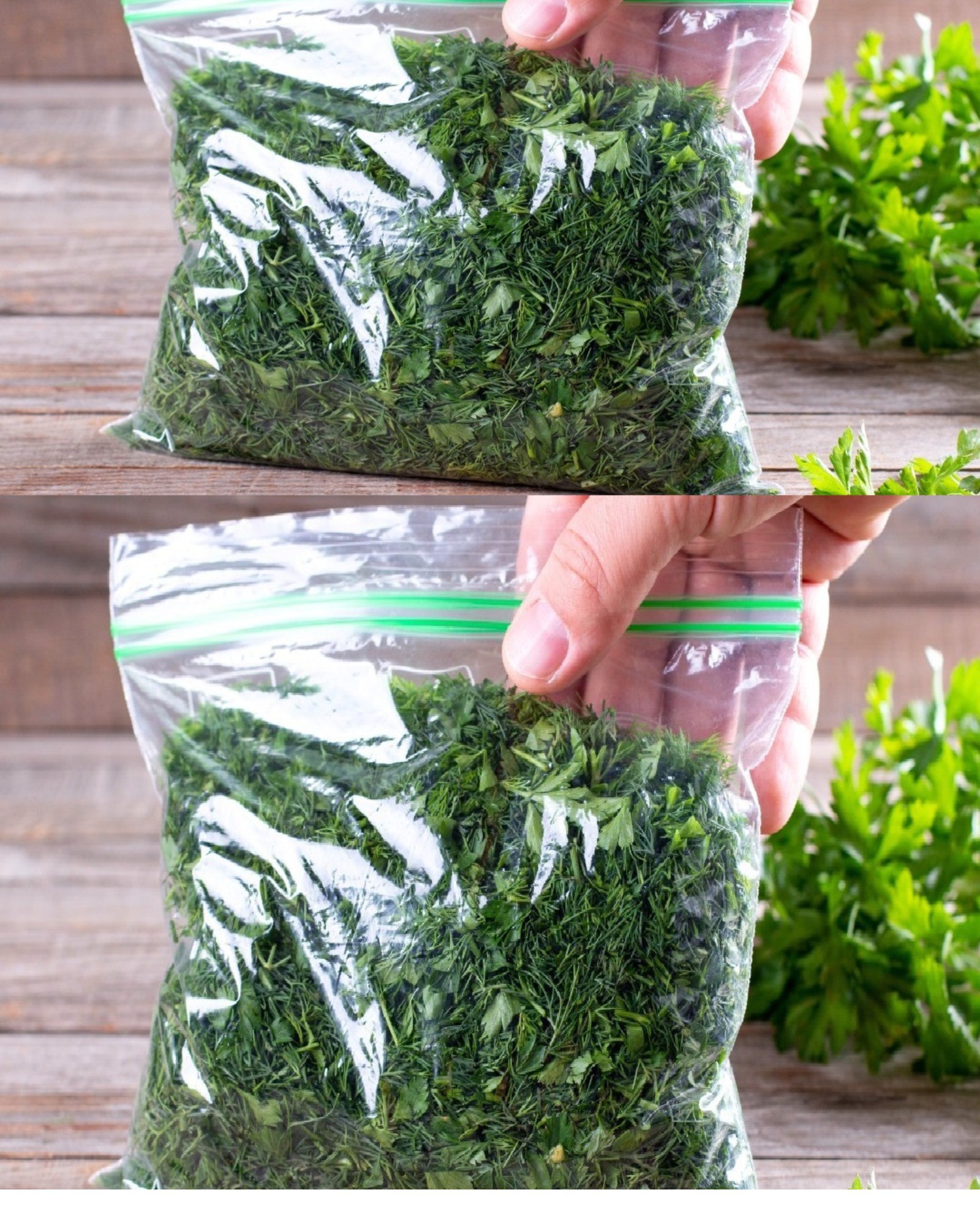 Liście przykryj luźno folią spożywczą lub włoż miskę do szczelnego pojemnika. Ważne, aby liście miały dostęp do powietrza, ale nie były narażone na bezpośrednie działanie wilgoci.