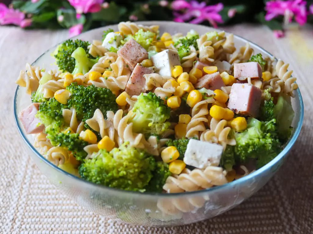 Makaronowa sałatka z 5 składników z brokułem