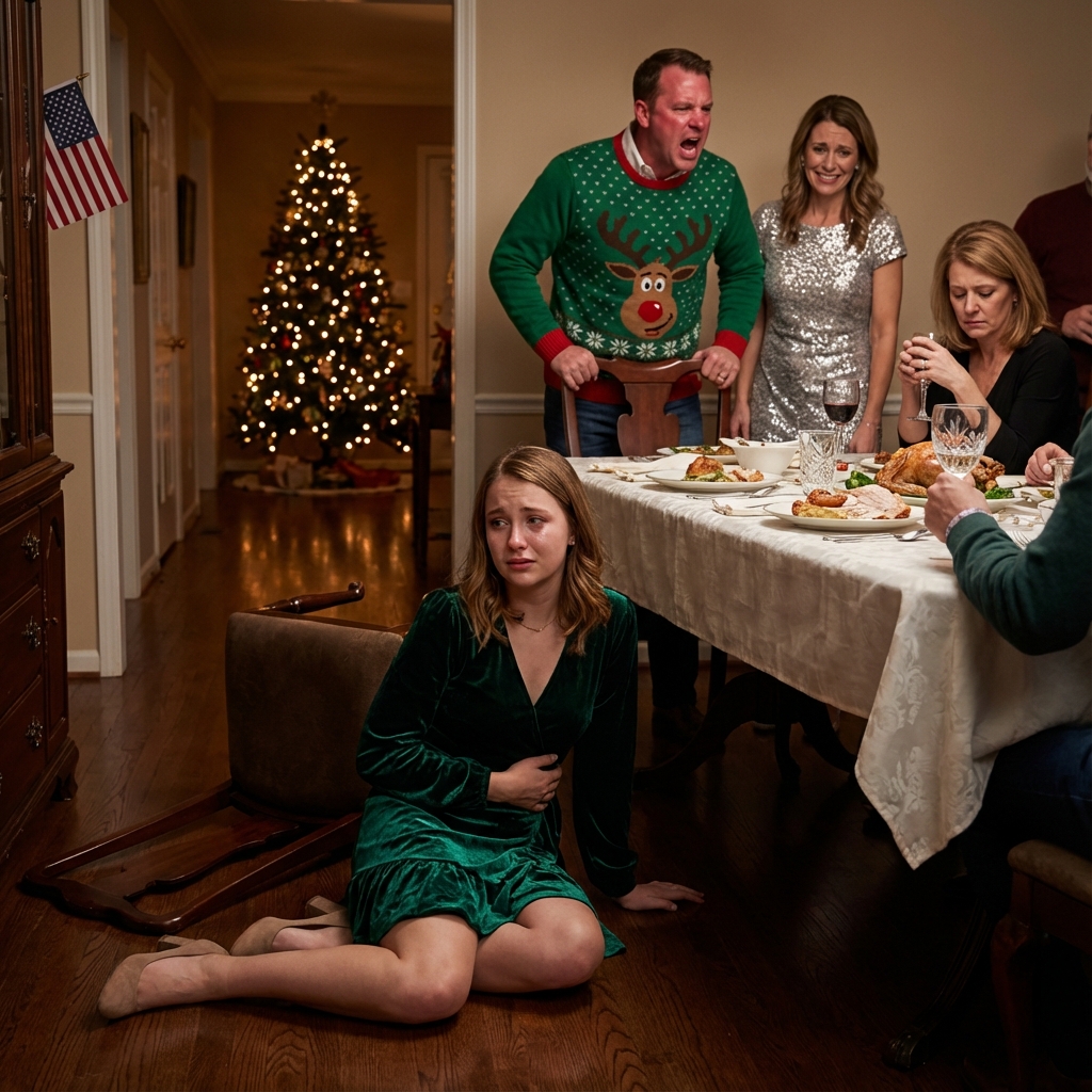 Zmusiłam się do podniesienia, biodro krzyczało, a sos żurawinowy lepki i zimny na skórze. Sukienka mojej babci – kremowy jedwab z początku lat siedemdziesiątych – była zniszczona. Nie spojrzała na mnie. Spojrzała na niego.