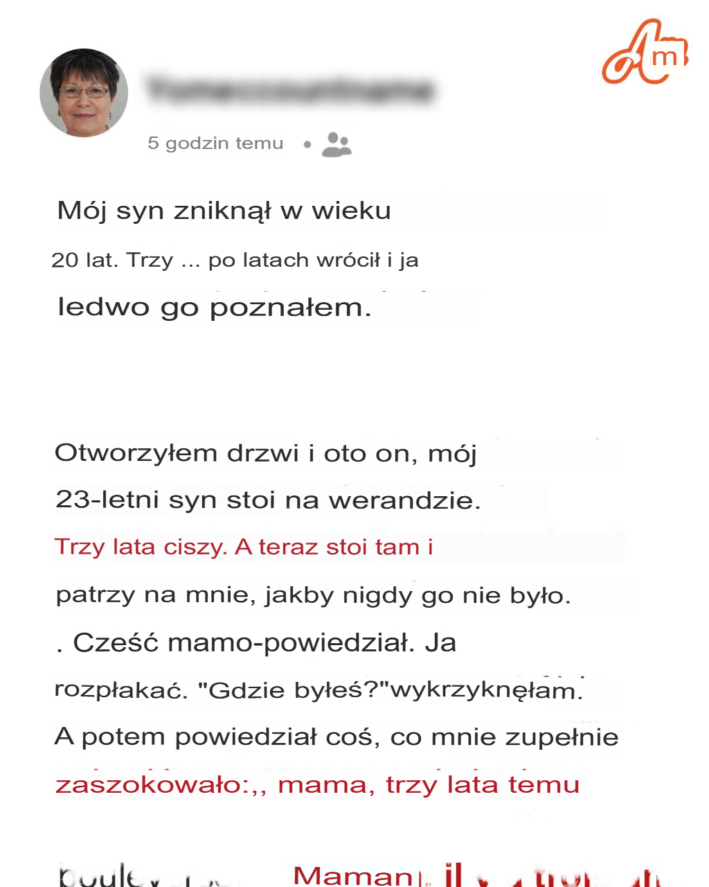 Mój syn był burzą, która rozdarła nasze życie i pozostawiła po sobie jedynie ból. Kiedy zmarł w wieku 20 lat, myślałam, że już go nigdy nie zobaczę. Ale trzy lata później pukanie do moich drzwi opowiedziało inną historię. Mój syn znów był w domu, ale nie byłam pewna, czy jestem gotowa na to, kim się stał.