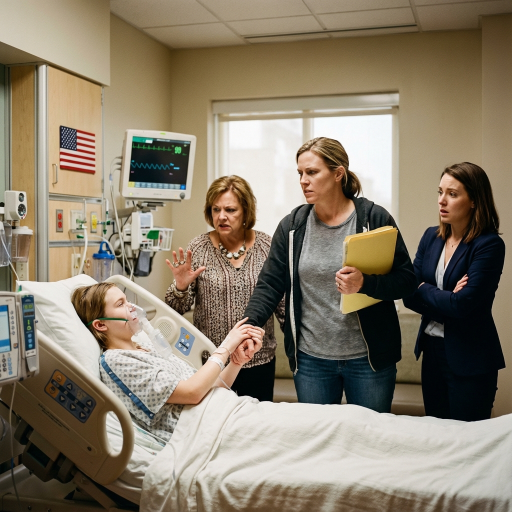 Otaczało ją światło z korytarza, ciemny płaszcz przewieszony przez ramię, blond włosy spięte w zadziorny kucyk, który próbował, ale nie udawał, że jest naturalny. Moja matka, Lorraine, krążyła za nią, z torebką przyciśniętą do żeber niczym noszony sekret. Mogliby wchodzić do banku, a nie do sali z napisem OIOM – Tylko dla personelu upoważnionego, na tyle dużym, by zrozumiał to każdy sędzia.