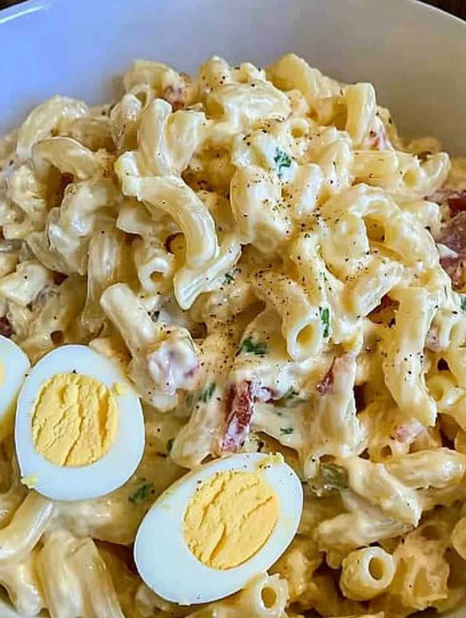 To wielki hit na letnie spotkania, pełen smaku i z niewielką ilością majonezu. Kremowy dressing, który pokrywa każdy kęs tej sałatki makaronowej, sprawia, że jest ona rozkoszą dla podniebienia. To również korzystny sposób na wykorzystanie resztek jajek na twardo.