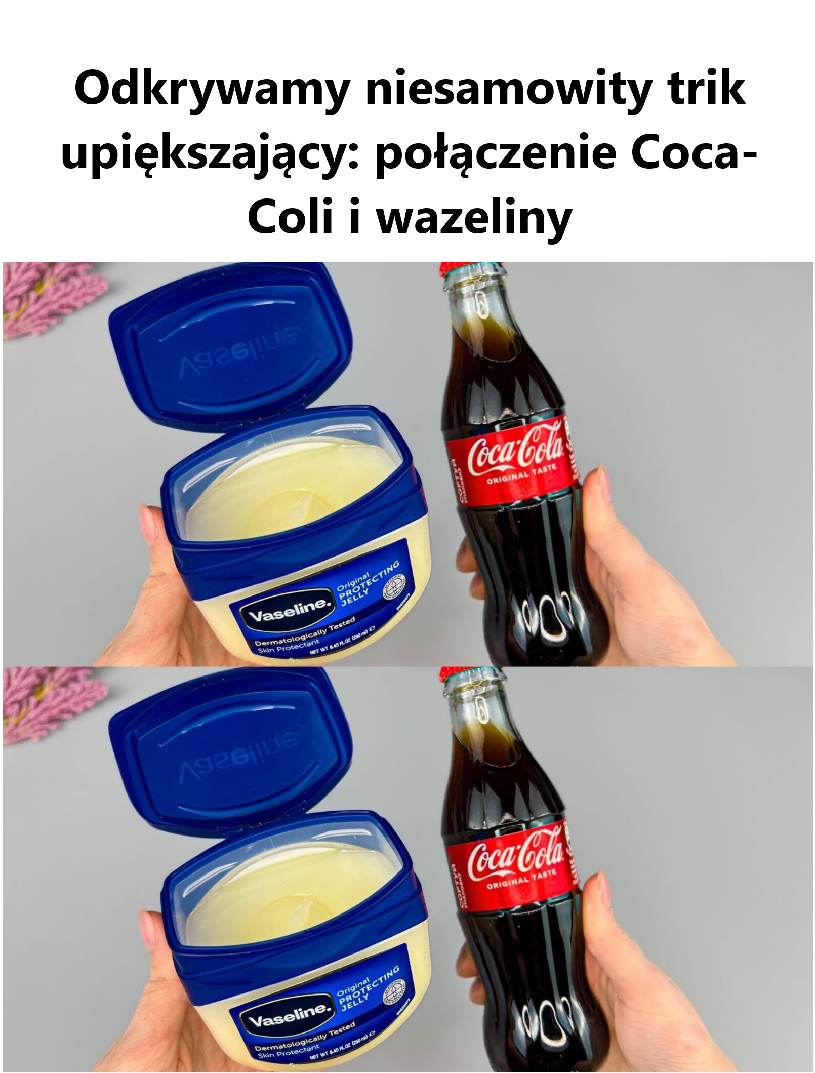Hej! Przygotuj się na nieoczekiwaną przygodę w świecie piękna z nieprawdopodobnym połączeniem: wazeliny i Coca-Coli. Prawdziwa magia pojawia się, gdy dwa dobrze znane produkty, Coca-Cola jako orzeźwiający napój i wazelina jako uniwersalny produkt do pielęgnacji skóry, łączą się. Dołącz do nas, aby odkryć zdumiewające korzyści dla urody wynikające z połączenia Coca-Coli i wazeliny. Nie uwierzysz, co odkryjesz!