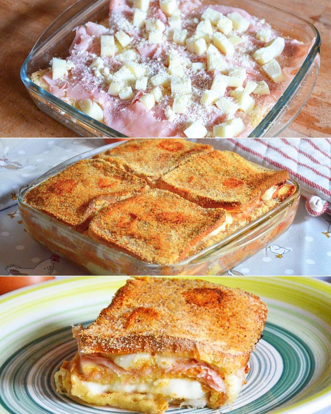 Wypełnij pierwszą warstwę plasterkami gotowanej szynki 7.