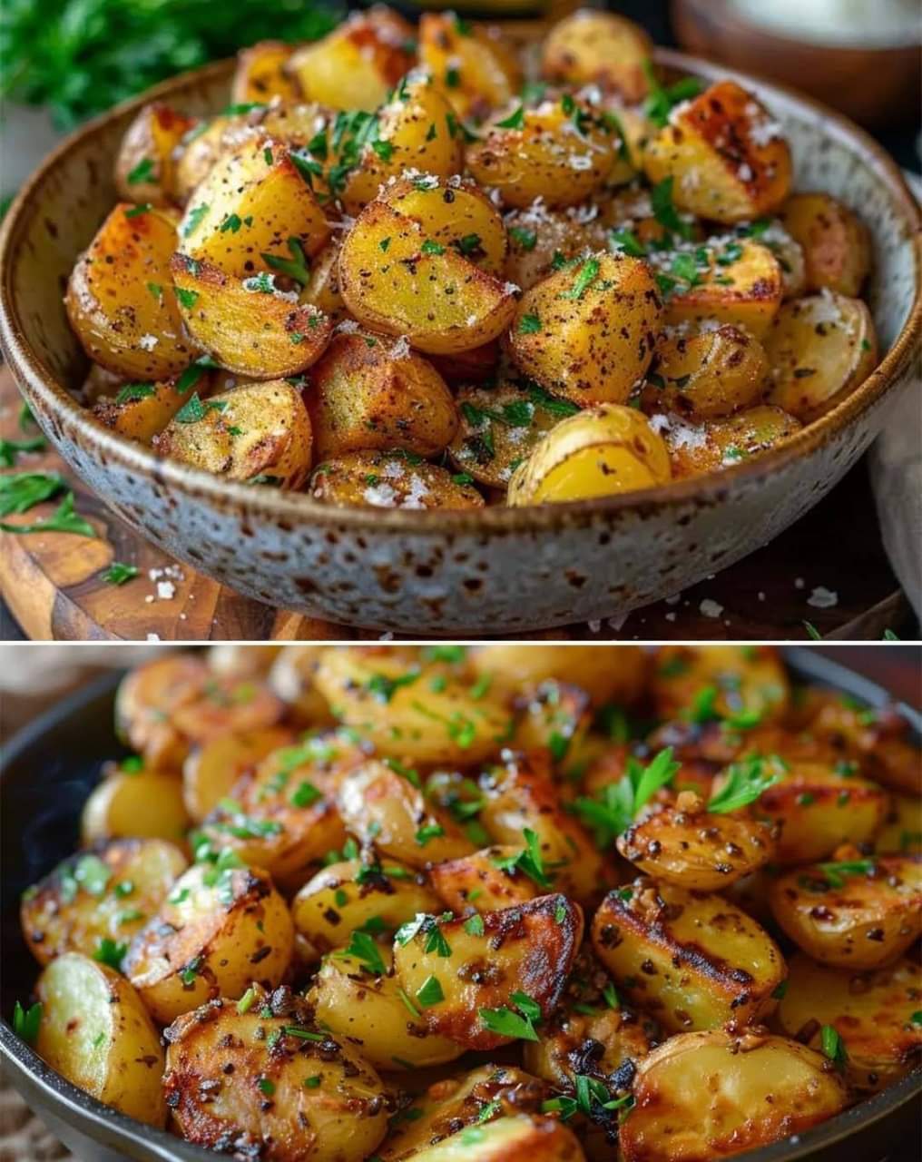 Odkryj eksplozję smaków dzięki naszym pieczonym ziemniakom z masłem czosnkowym! Chrupiące na zewnątrz, delikatne w środku.