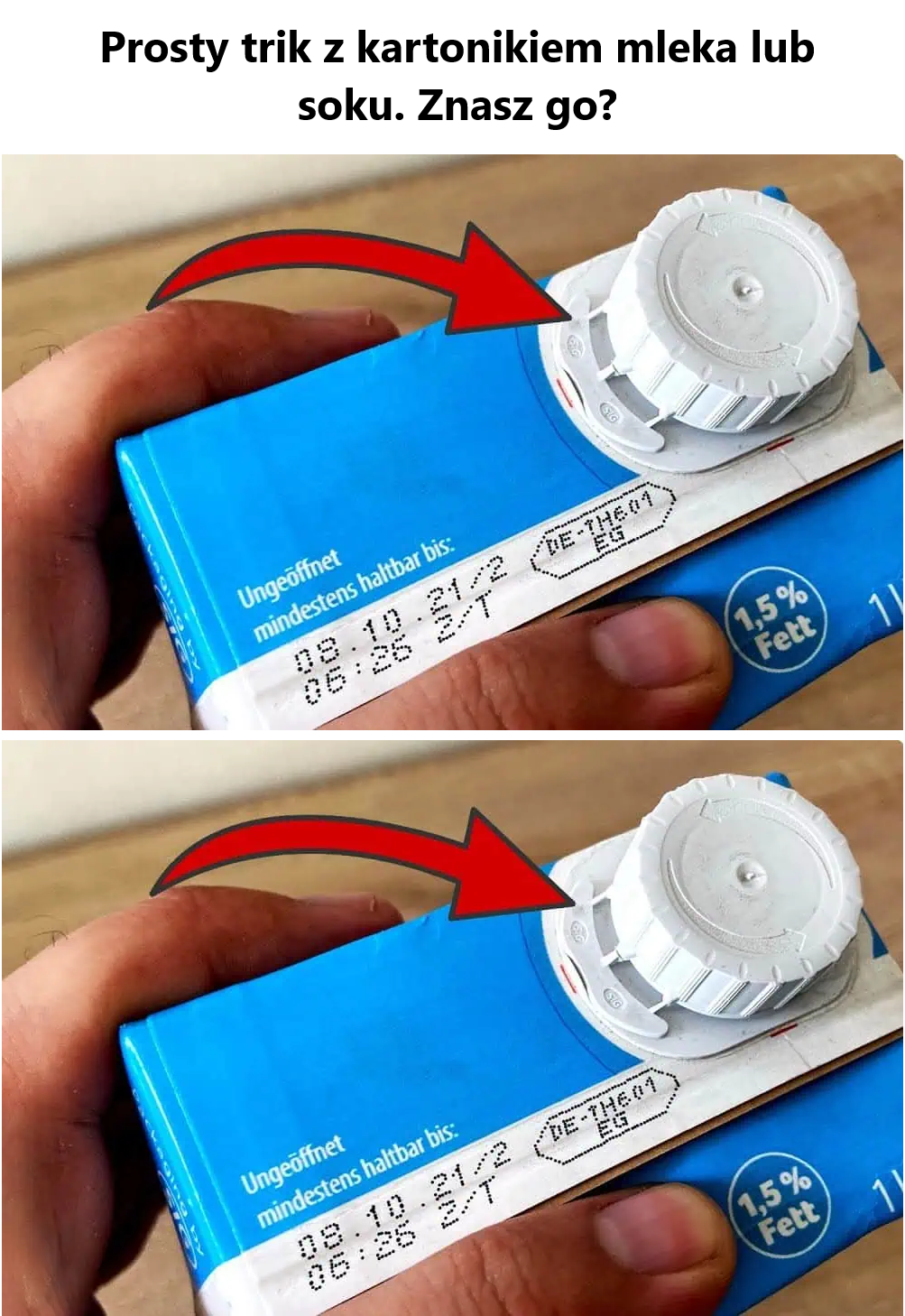 Kiedy nalewasz mleko lub sok z kartonu w klasyczny sposób, powietrze zostaje zassane do kartonu, powodując nierównomierny przepływ i zwiększając ryzyko rozlania. Oto dwa proste triki, aby temu zapobiec: