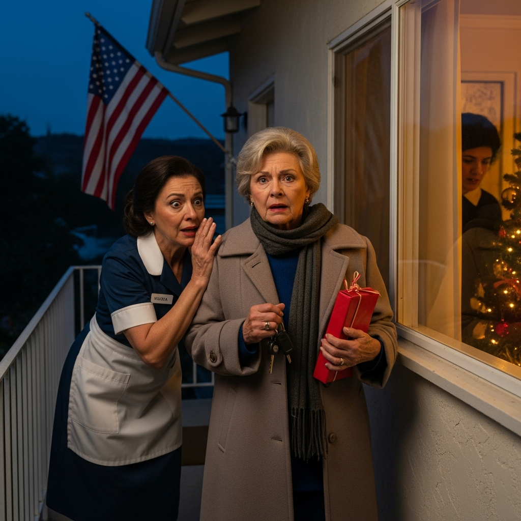 Mój syn zaprosił mnie na kolację wigilijną po roku milczenia. Kiedy dotarłem do jego domu, gospodyni chwyciła mnie za płaszcz tak mocno, że o mało nie spadłem ze schodów wejściowych.