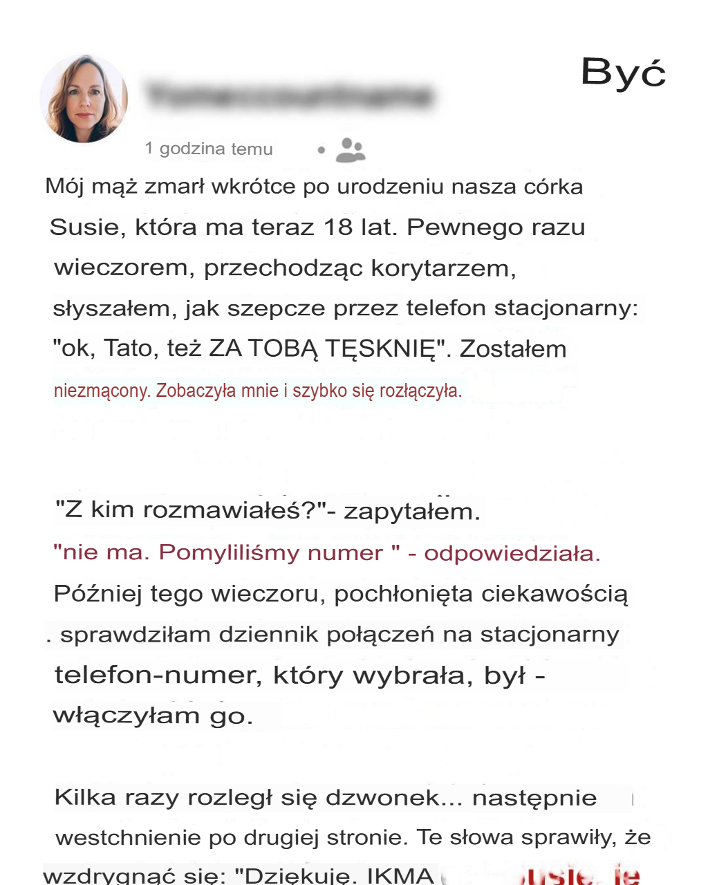 Stało się to w zwykły wtorek wieczorem. Szedłem korytarzem, gdy usłyszałem głos Susie. Był niski.