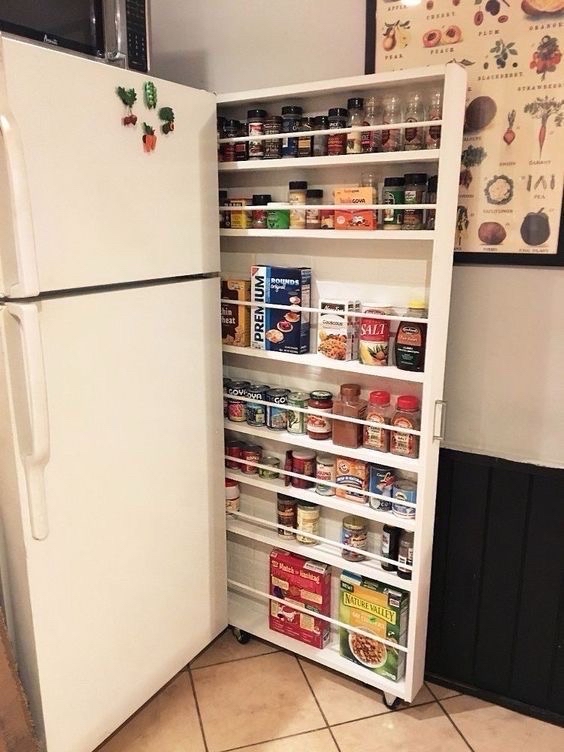 Krok 1: Wybierz lokalizację Najpierw znajdź odpowiednią lokalizację dla swojej spiżarni. Może to być niewykorzystana przestrzeń obok lodówki, przerwa między szafkami, a nawet wnęka w ścianie.