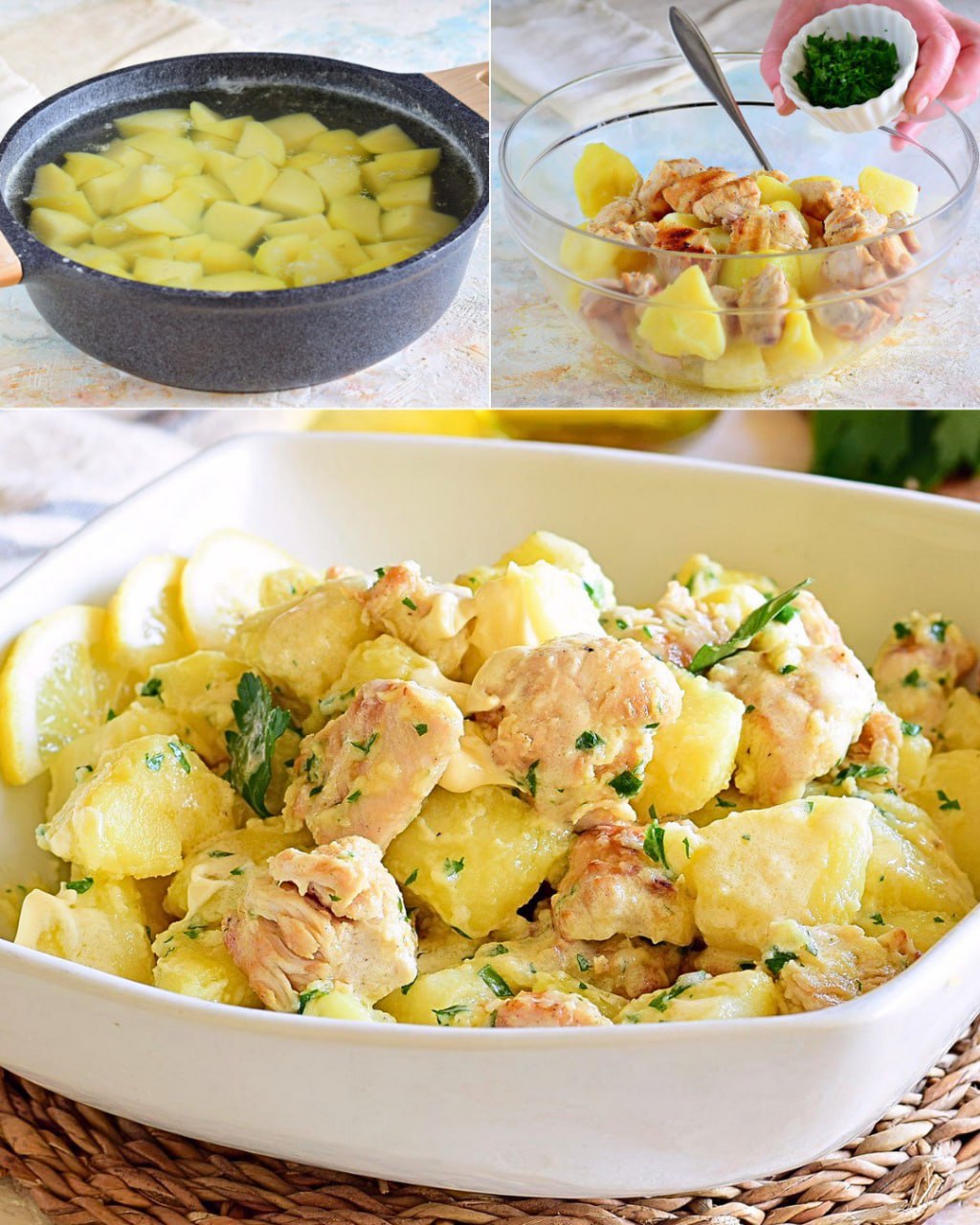 Sałatka z kurczakiem i ziemniakami to świetna opcja na pożywne danie, które można przygotować w szybki i prosty sposób. Idealnie sprawdza się na obiad, kolację, a także jako danie do pracy czy na spotkanie z przyjaciółmi. Połączenie delikatnego mięsa z kurczaka, aromatycznych ziemniaków i świeżych warzyw czyni ją sycącą, ale jednocześnie lekką. Dzięki swojej prostocie w przygotowaniu, ale pełni smaku, ta sałatka stanie się z pewnością ulubionym posiłkiem w Twoim menu!