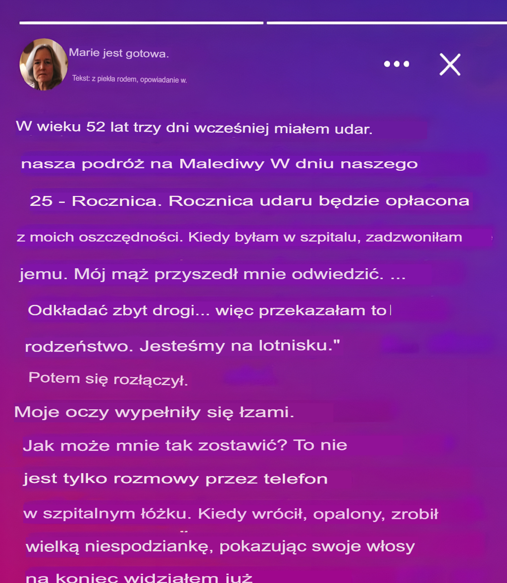 Trzy dni przed naszą wymarzoną podróżą na Malediwy, z okazji rocznicy ślubu, dostałam udaru. Kiedy byłam w szpitalu, nie mogąc się ruszyć, mój mąż zadzwonił… z lotniska. „Przełożenie jest zbyt drogie” – powiedział i się rozłączył. Ten telefon zmienił wszystko i uruchomił plan, którego się nie spodziewał.