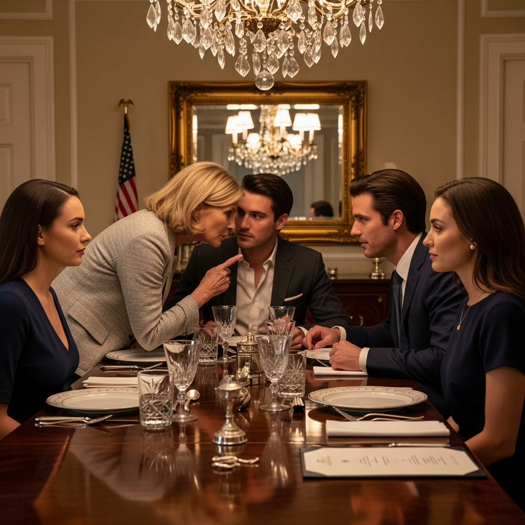 Weszła do salonu ubrana w sukienkę, która kosztowała więcej niż miesięczny czynsz większości ludzi, a z jej uszu i szyi spływały diamenty, jakby wpadła do sklepu jubilerskiego i wyszła z niego cała pokryta gadżetami.