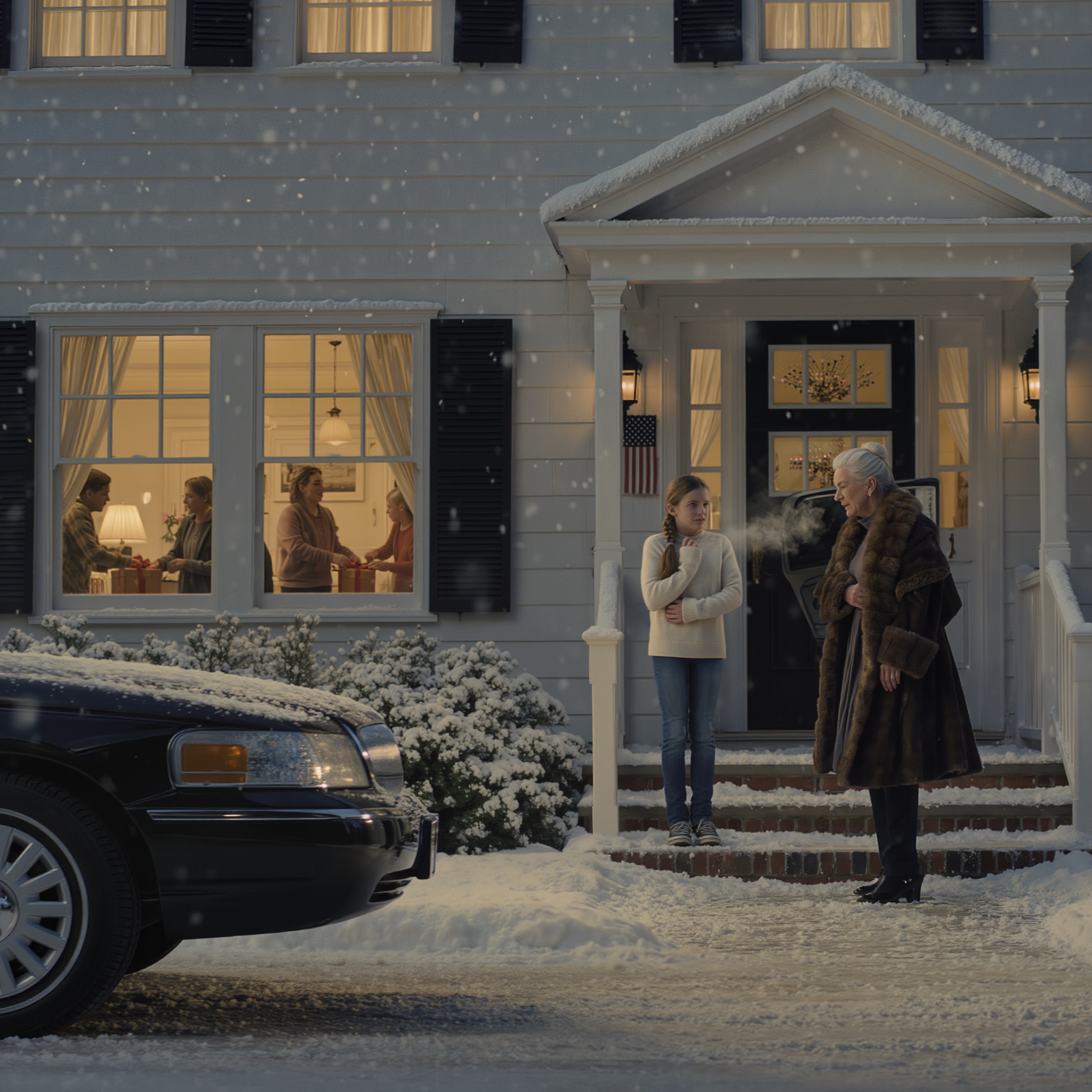 Długa, czarna limuzyna powoli wjechała na naszą ulicę, niepasując do minivanów i wiekowych pickupów. Jej lśniące nadwozie odbijało czerwono-zielone światełka choinkowe, gdy przetaczała się obok domów sąsiadów, a spaliny wirowały w mroźnym powietrzu niczym oddech smoka.